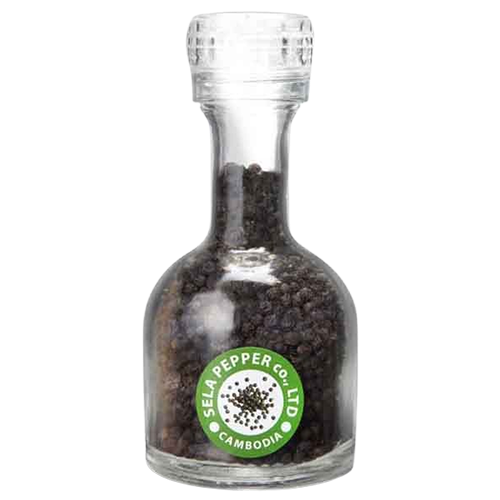 Grown in Cambodia’s rich red soil and sun-dried to perfection, these bold black peppercorns are packed in a refillable glass grinder for maximum freshness. Each twist releases a warm, aromatic heat — earthy, spicy, and vibrant. Ideal for seasoning meats, vegetables, and sauces, this grinder brings the true taste of Cambodian pepper to your kitchen, one grind at a time.